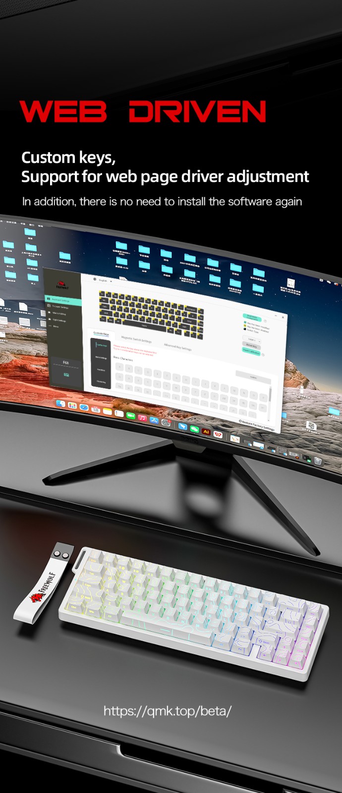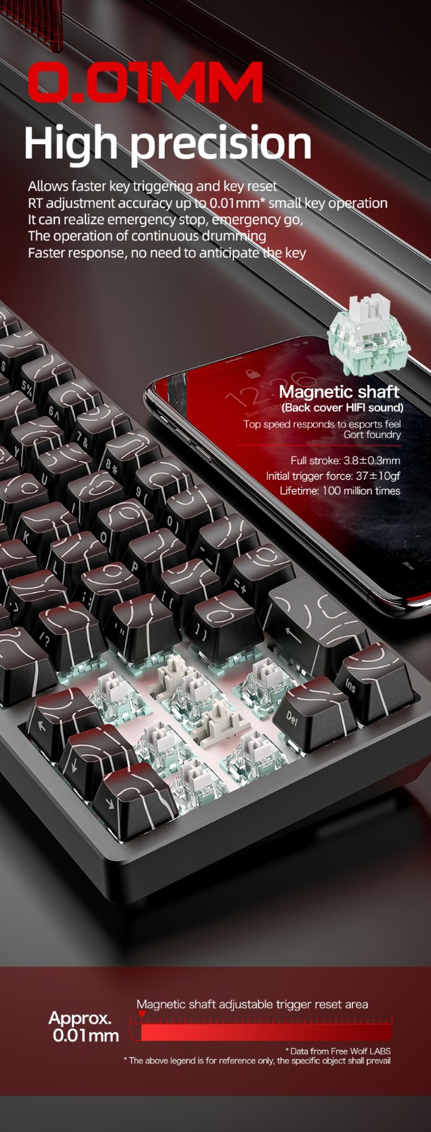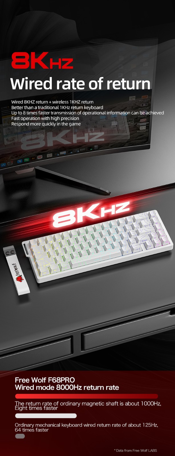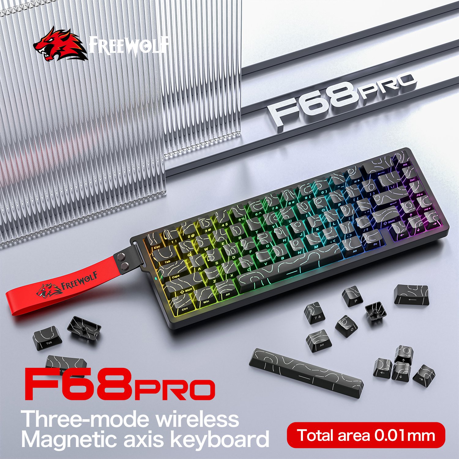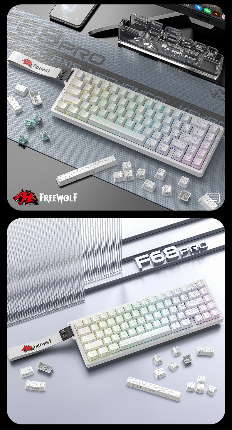 Teclado inalámbrico del eje magnético rgb f68pro del lobo libre
